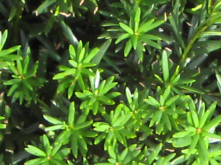 (Eibe) Eiben, die sonst oft als Rahmengehölz in der Grabgestaltung eingesetzt werden, können als kleinwüchsige Büsche auch flächendeckend gepflanzt werden. So erhält man einen der wenigen Nadelholzbodendecker in einem samtigen dunklen Grün.