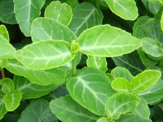 (Grün-weißer Spindelstrauch) Der immergrüne Spindelstrauch mit weiß gerändertem Blatt gilt als robuster Bodendecker für sonnige und halbschattige Standorte. Er bildet eine dichte, halbhohe Fläche und benötigt einen regelmäßigen Rückschnitt.